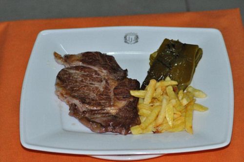 ENTRECOTT DE TERNERA A LA PLANCHA CON PATATAS FRITAS Y PIMIENTOS CACHOPO ASTURIANO CON ASADILLO Y PATATAS PRESA IBERICA A LA BRASA CON CHIMICHURRI Y PATATAS Y PINIENTOS CHULETILLAS DE CORDERO LECHAL CON PATATAS Y PIMIENTOS BACALAO CONFITADO CON SANFAINA CHIPIRONES RELLENOS CON SALSA AL ESTILO CHEF CORDERO O COCHINILLO ASADO AL ESTILO DE LA CASA (SUPLEMENO 6€)